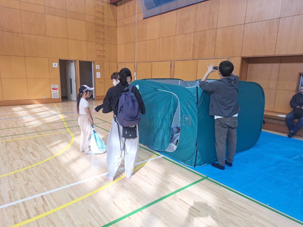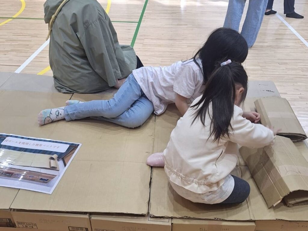 当日は、ローリングストック(循環備蓄)の考え方や災害時水栓開栓訓練、避難所でのパーテーション組み立てや段ボールベッドの作成など、災害が起こる前の準備、発生時の対応方法について、参加者全員で楽しく学ぶことができました